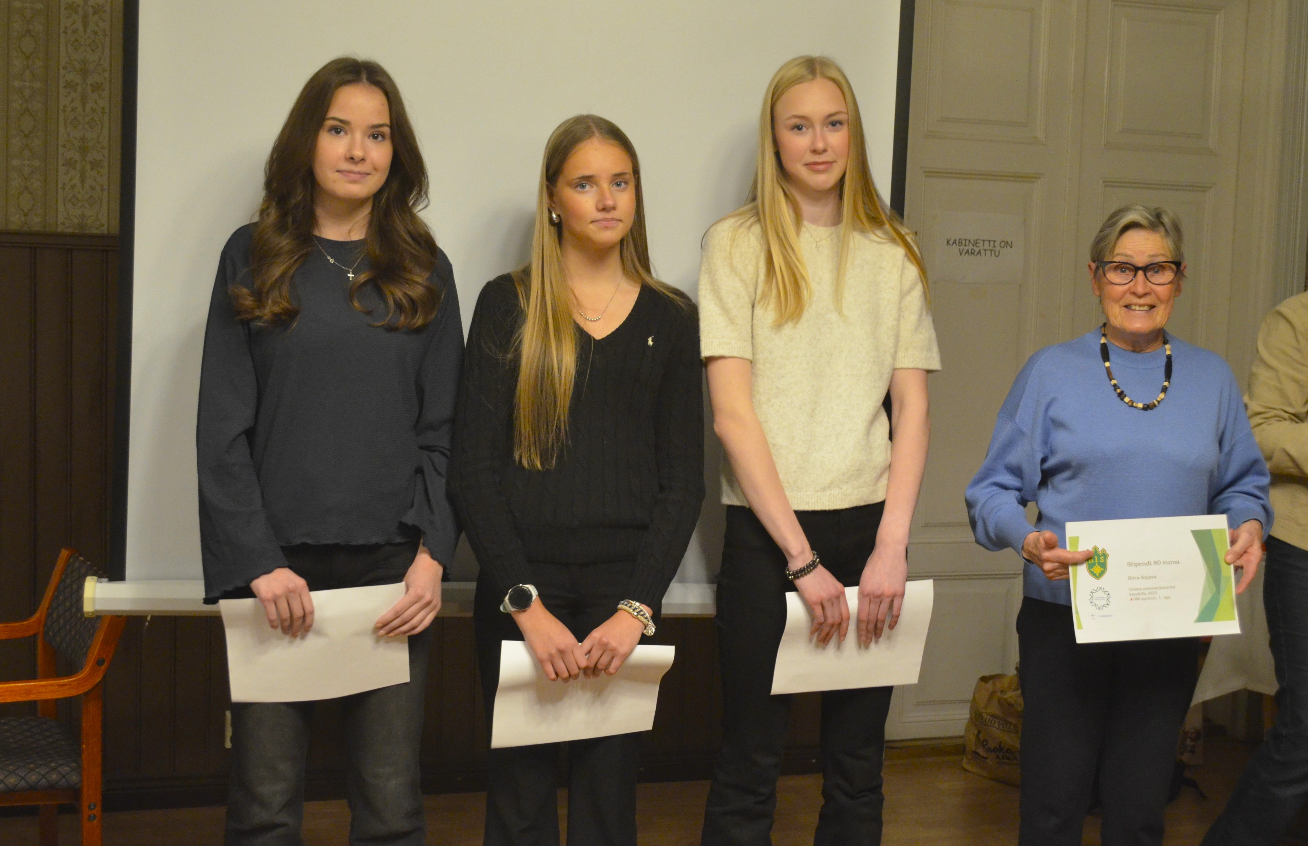 13 Stipendit: menestyksen mukaan Alma P, Silva K, Alisa G, Venla M, Antti V, Ritva K, Olavi E